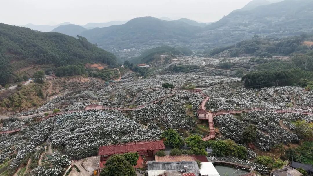 在和平乡的万亩枇杷园里,放眼望去,一棵棵枇杷树苍劲挺拔,银色的果袋如雪覆枝,守护着藏于其中的“金果子”。作为“中国枇杷之乡”,云霄得天独厚的气候条件孕育出皮薄肉厚、汁多味甜的优质枇杷,现有枇杷种植面积超8万亩,年产量达5.5万吨,全产业链产值超20亿元。在这片丰收的土地上,县气象局以“监测精密、预报精准、服务精细”的理念深度融入枇杷生长全周期,用“智慧气象”为“云霄枇杷”这一地理标志产品筑牢坚实的屏障。