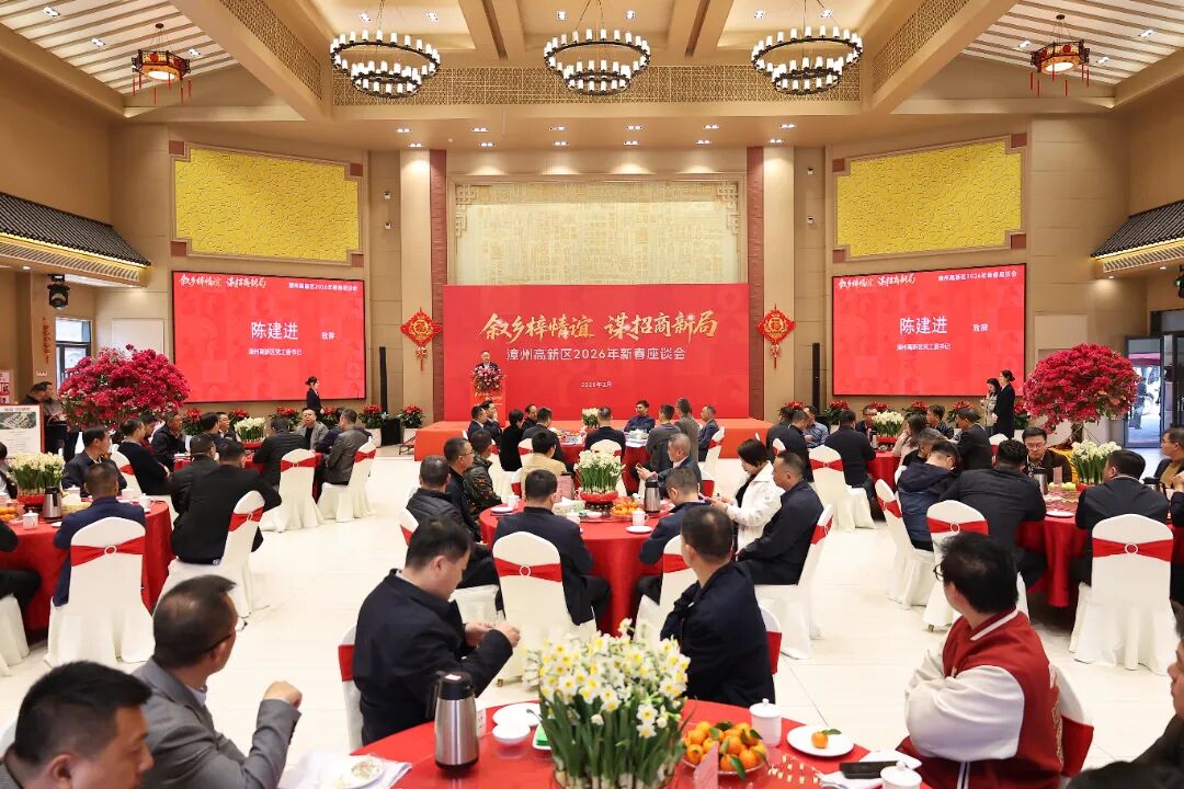 大年初三,新春的暖意浸润着九龙江畔。一场以“叙乡梓情谊,谋招商新局”为主题的高新区企业家新春座谈会在龙江岁月诚东夜宴水仙厅举办。来自全国各地的60多位返乡乡贤、企业家代表齐聚一堂,畅叙桑梓情谊,共谋发展新篇。