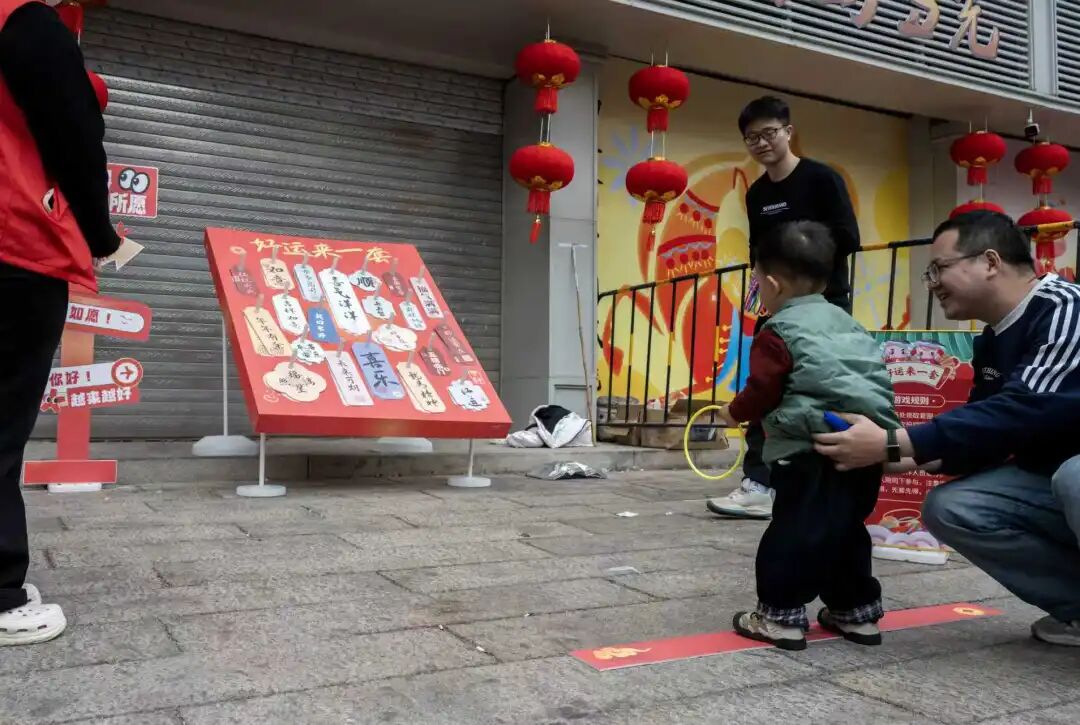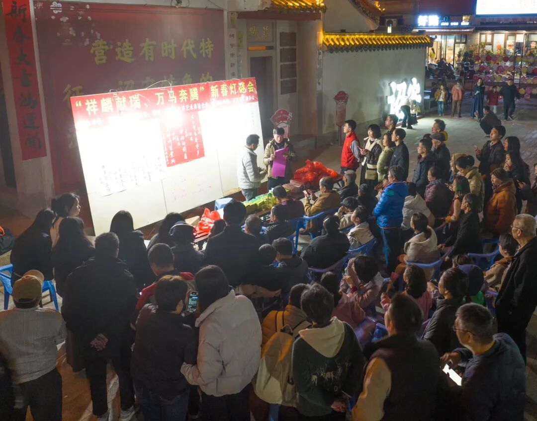 有传统,有新意,更有温情脉脉的互动。在宝瑞新天地广场,气球小丑用幽默诙谐的表演,为孩子们编织了一个五彩斑斓的童话世界;在南诏镇供电所前,“圈住梅岭鲜,套住新年福”的套圈游戏前排起了长龙,人们在欢声笑语中,将鲜美的海产和新年的福气一同“圈”入怀中。许愿树下,“星愿奇遇、幻乐街头”互动装置点亮了人们的奇思妙想,街头艺人的即兴表演更添一份惊喜。而最温暖的角落,则属于“阖家留影、岁月凝福”免费摄影服务。镜头前,一张张笑脸被幸福点亮,一个个家庭的团圆瞬间被温柔定格,成为这个春节最珍贵的记忆。