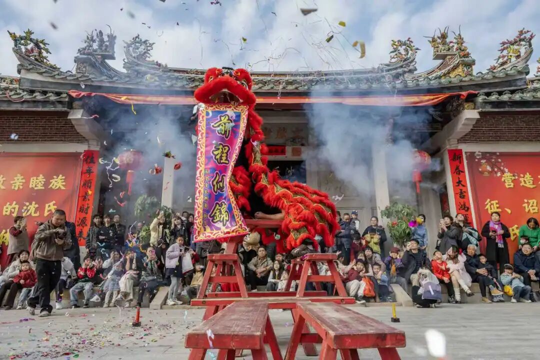 当传统民俗与现代创意在中山路上激情碰撞,一场流动的视觉盛宴就此点燃。伴随着铿锵有力的锣鼓声,“龙狮献瑞贺新春”活动率先登场。威武的醒狮腾挪跳跃,灵动的祥龙蜿蜒游走,舞者们精气神十足,将龙狮的神韵展现得淋漓尽致,赢得围观群众阵阵喝彩。不经意间,阳台上飘来一曲古风悠扬的“屏风遮影”舞蹈,街角闪现《渔家姑娘》的快闪身影,曼妙的舞姿与古建筑相映成趣,让非遗之美悄然融入街头巷尾。最引人注目的当属“牡蛎人偶巡游”,身着特色服饰的人偶们憨态可掬,沿街漫步,仿佛从海的记忆中走来,引得市民纷纷驻足合影,让承载着海洋记忆的非遗文化以最鲜活的方式“活”了起来。
