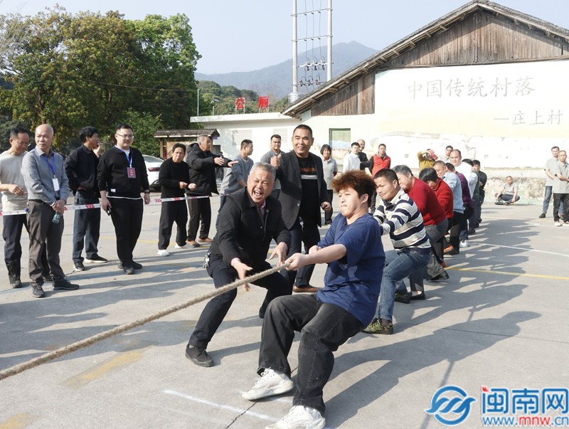 上午九时,决赛准时打响。在承载着数百年风雨的土楼巨壁凝视下,广场中央,一条粗壮的麻绳横亘中线,绳中央的红绸宛如跳动的火苗,牵动着所有人的目光。古朴的土楼与沸腾的赛场,宁静的历史与迸发的激情,在此刻交织成一幅动人心魄的画卷。