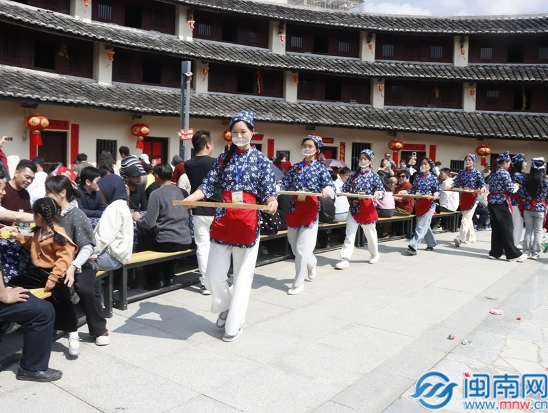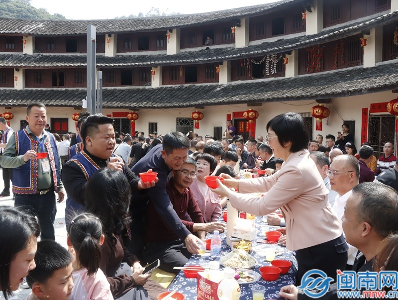 闽南网2月21日讯(闽南网记者 张恩培 通讯员 吴雅静)春和景明,年味未散。2月21日的平和县大溪镇下村村,红灯高悬映古村,鼓乐喧天庆团圆,一场以“灵山客宴,土楼春筵”为主题的客家长桌宴在此隆重开席。来自八方的嘉宾与游客循着乡愁与年味而来,在百米长桌旁共赴盛宴,沉浸式感受客家文化的独特魅力,让这座客家古村洋溢着浓浓的喜庆祥和与脉脉乡情。
