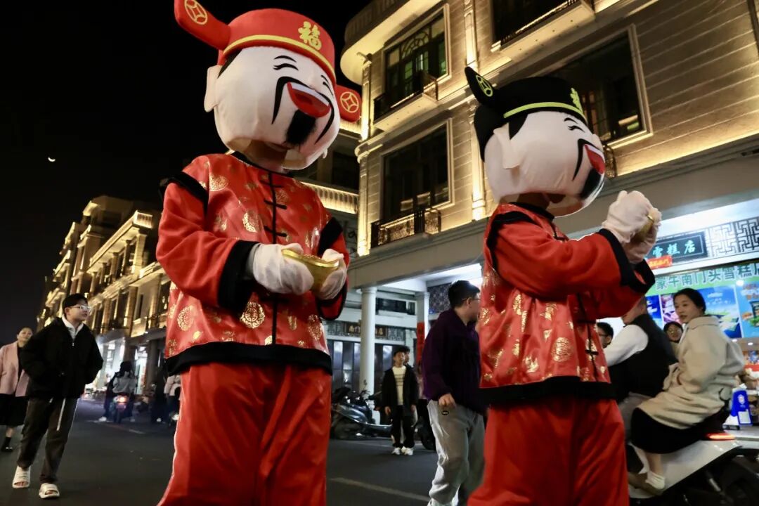 活动期间,最亮眼的风景莫过于“财神”的沿街巡游送福。由演员活灵活现扮演的财神爷,手捧金元宝,沿路而行,向沿街的市民和往来的游客派发精美小礼品。大家争相与财神爷合影互动,定格下一个个喜气洋洋的瞬间,真切地感受着“财神到,福运来”的美好寓意,所到之处,欢声笑语,年味四溢。