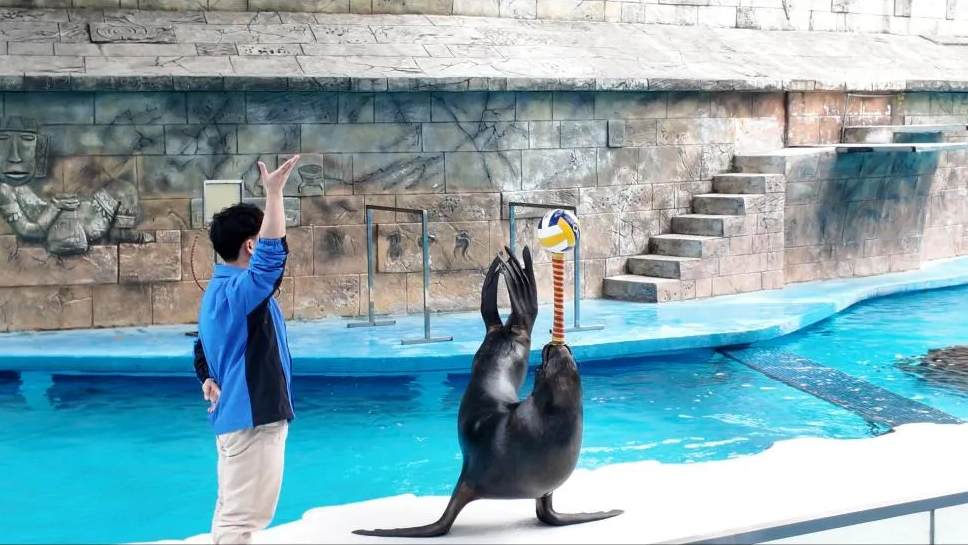 从厦门来的游客林女士带着全家前来游玩,她说:“这里的海洋动物种类多,表演也特别精彩,孩子玩得特别开心,还能学到不少海洋知识,一举两得。”