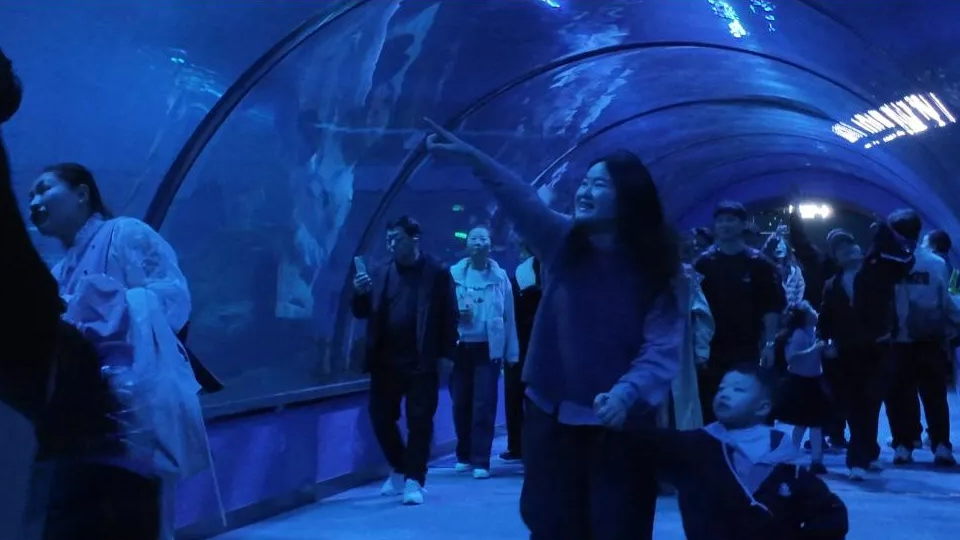 天柱山欢乐大世界成为春节假期火爆的景区之一。园区内,海豚跃出水面顶起彩球,海狮拍打着前鳍向观众致意,精彩的海洋动物表演引得掌声不断。海底隧道里,人群缓缓移动,巨大的鳐鱼从头顶悠然滑过,鲨鱼在不远处游弋,孩子们仰着头,眼睛追着鱼群移动,嘴里发出“哇”的惊叹。