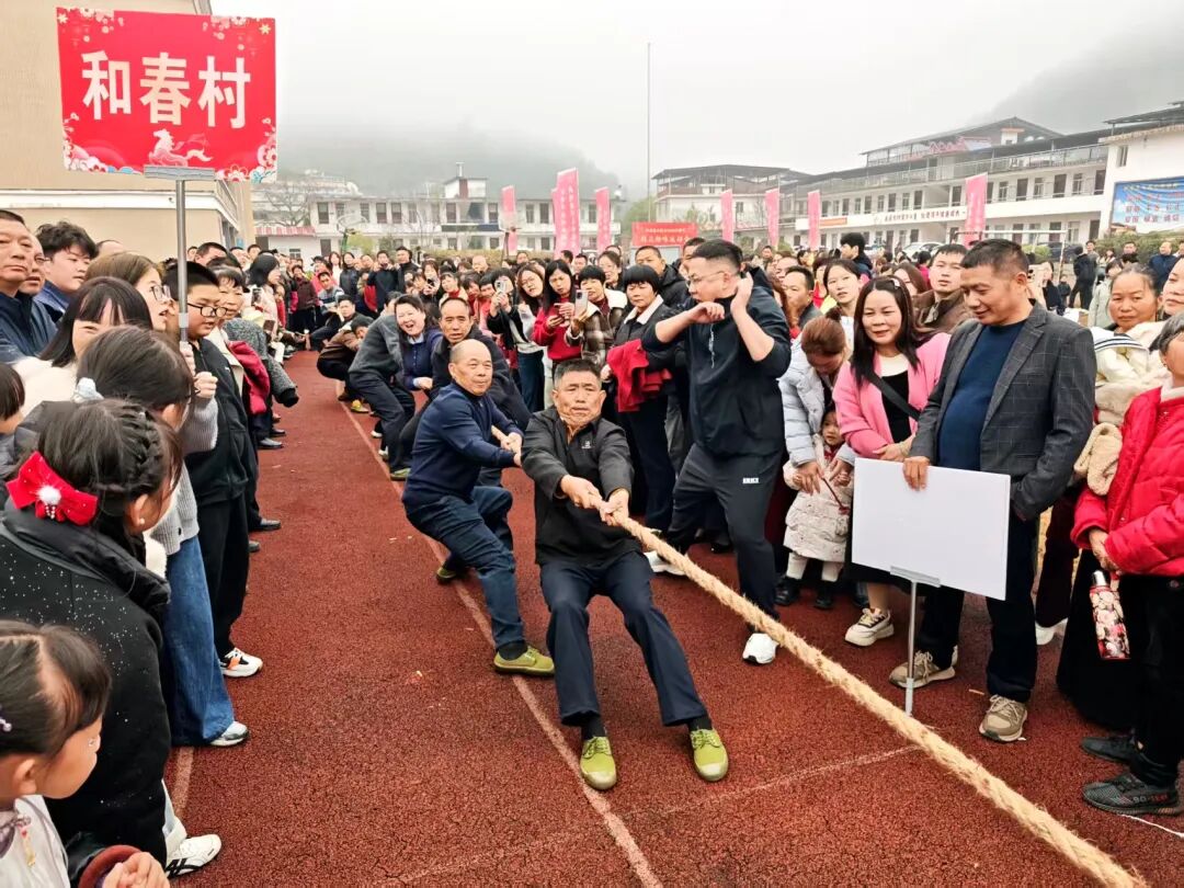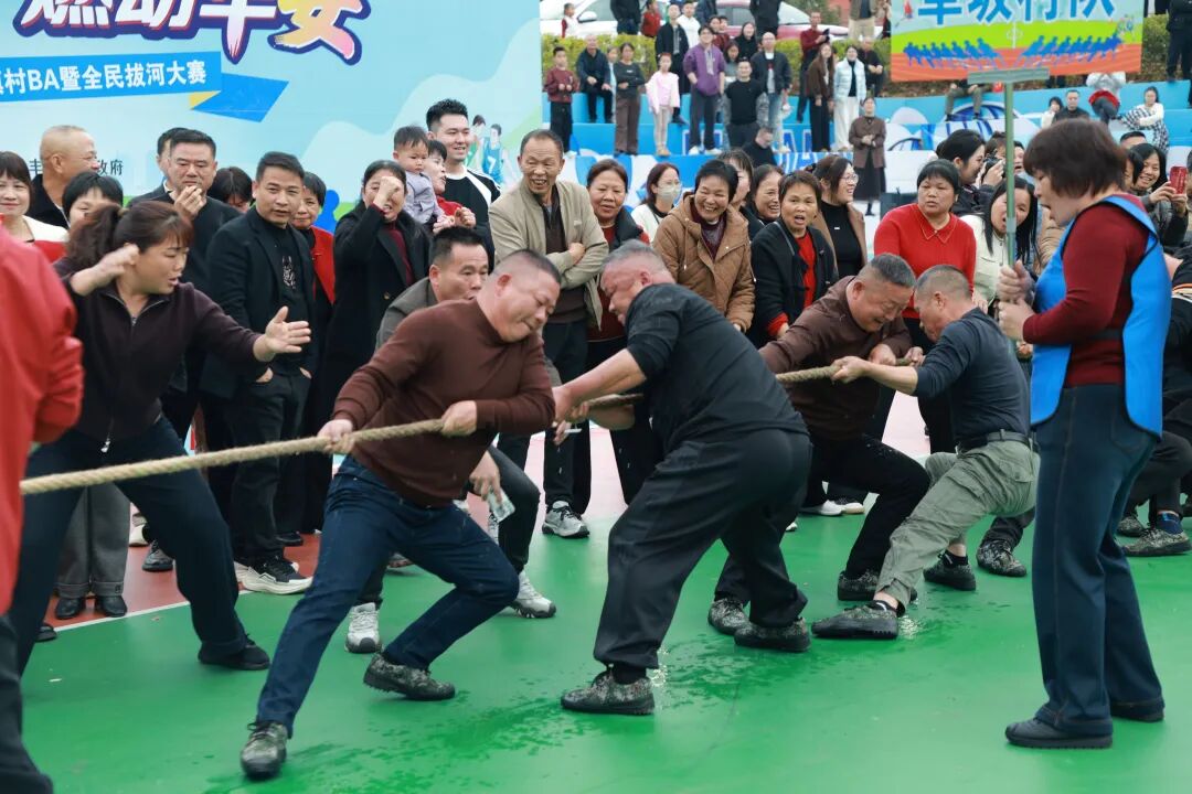 紧接着,拔河比赛拉开战幕,各村代表队紧握长绳、齐心协力,场边加油声一浪高过一浪。