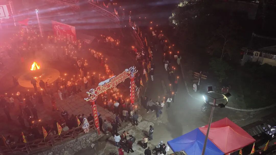 夜幕降临,伴随着雄浑的鼓点和祈福的号子,村民们与游客共同点燃手中的火把,点点星火汇聚成一条蜿蜒游动的“火龙”,开始环村巡游。巡游队伍宛如骏马奔腾,穿梭于古寨的石板路与民居之间,寓意着新的一年村寨发展将一马当先,踏上新征程。