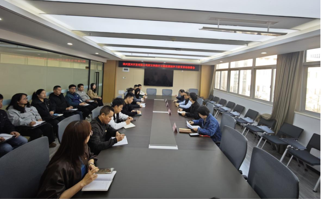 公司组织召开树立和践行正确政绩观学习教育启动部署会。会议深入传达学习中央、省委、市委及区委党的建设工作领导小组会议核心精神,对公司树立和践行正确政绩观学习教育工作进行全面安排部署。公司领导班子成员、各党支部书记、委员等24人参加会议,会议由公司党委副书记、总经理蔡思明同志主持。