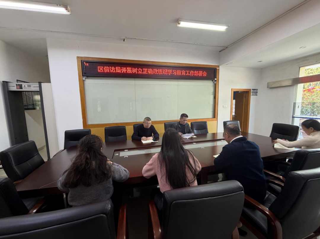 区信访局召开树立和践行正确政绩观学习教育动员部署会,深入学习贯彻习近平总书记关于树立和践行正确政绩观的重要论述,以及中共中央办公厅《关于在全党开展树立和践行正确政绩观学习教育的通知》和中央、省委、市委、区委党的建设工作领导小组会议精神,并对相关工作进行具体部署。会议指出,信访部门是党群连心桥,政绩观端正与否直接关乎工作质效与群众口碑。开展此次学习教育,是筑牢政治忠诚、锻造过硬队伍、破解信访难题的必然要求,全局要坚守人民立场,把为民解忧作为核心政绩。