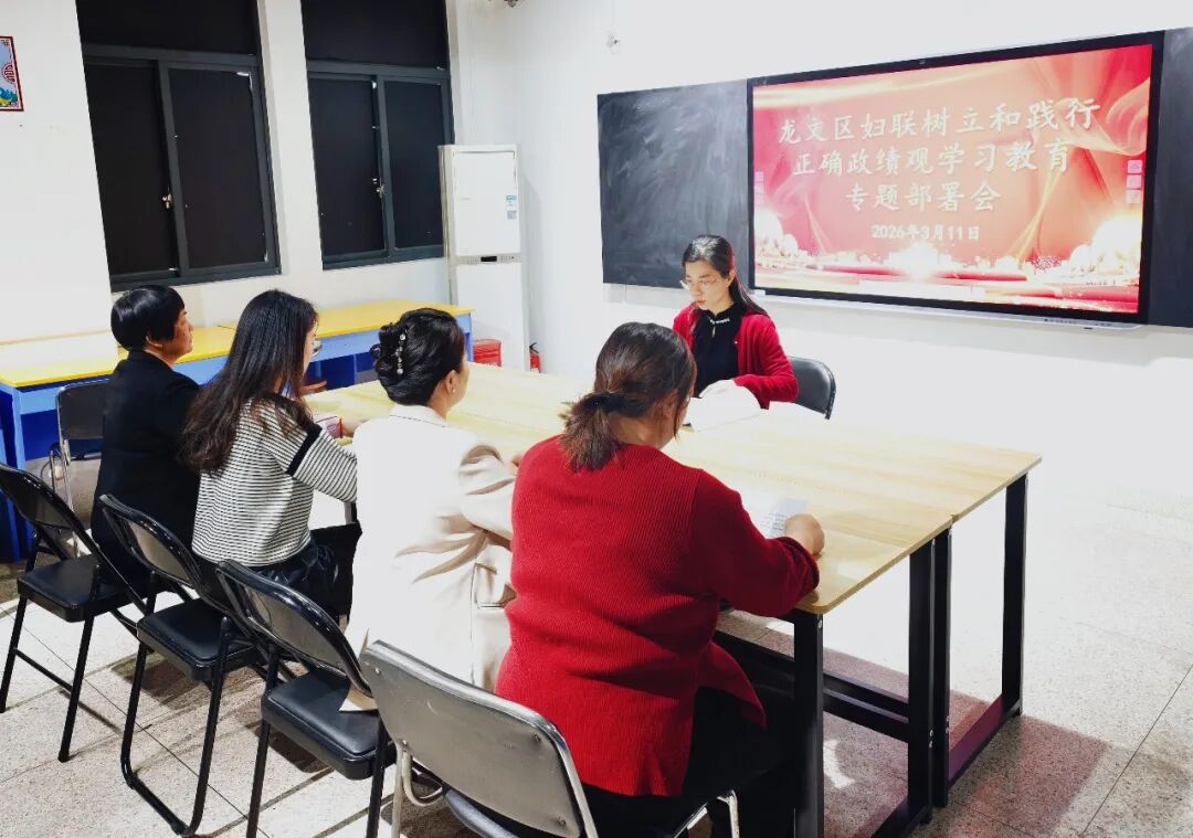 区妇联召开树立和践行正确政绩观学习教育动员部署会议,深入学习贯彻习近平总书记关于树立和践行正确政绩观的重要论述,传达学习中央、省委、市委和区委有关会议精神,并结合实际部署工作任务。会议强调,妇联系统全体干部要提高政治站位,增强开展学习教育的思想自觉、政治自觉和行动自觉;要紧扣工作实际,把开展学习教育与服务广大妇女及家庭紧密结合,以务实作风推动龙文妇女儿童事业高质量发展;要强化责任落实,一体推进“学、查、改”,确保学习教育取得扎实成效。