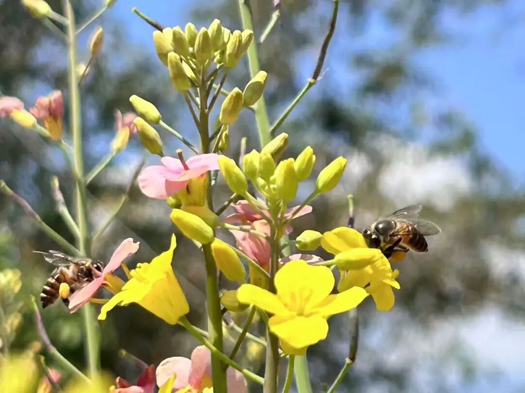 暖阳下,油菜花随风摇曳,清甜花香弥漫乡间。嫩绿枝叶与明艳花瓣相映成趣,花海与远山青翠相融,将村庄裹进浓浓春意。微风拂过,花浪起伏,不仅扮靓乡村颜值,更为春日增添勃勃生机。