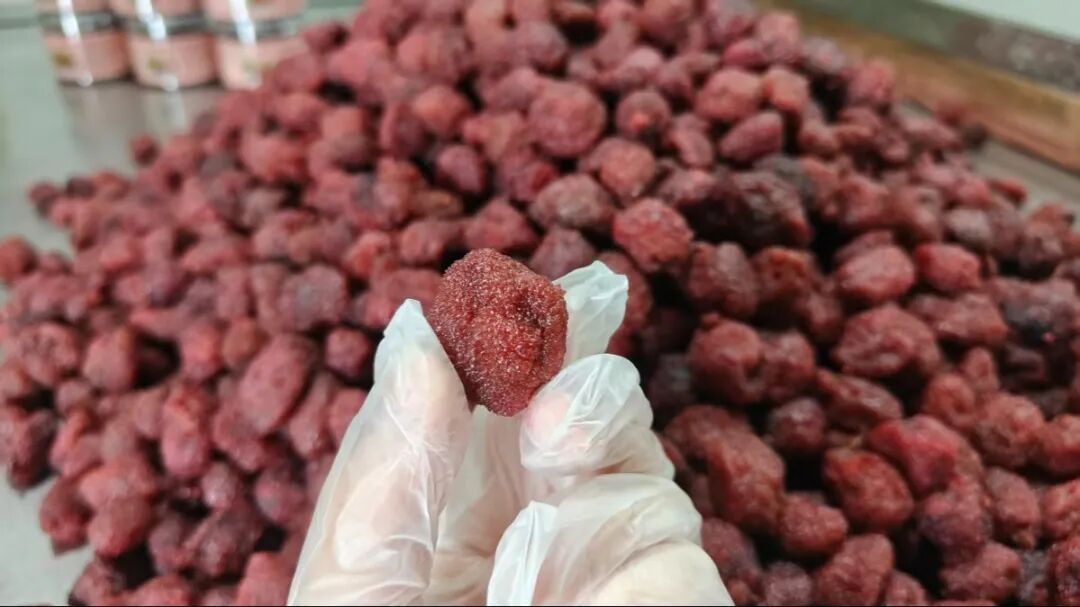 “东魁或软丝品种最佳,纤维细、甜度高,做出来还能保留原汁原味。”陈碧忠说,相比之下,硬丝杨梅纤维粗,口感差,不适合腌制。每年五六月杨梅采摘季,是工厂最忙碌的时候,五十天左右的采摘期内,鲜果源源不断送入零下二三十度的冷库保鲜,确保全年都有原料可供加工。