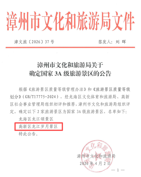 此次获评国家AAA级旅游景区,是对龙江岁月景区滨江岸线生态修复成效、设施配套及服务管理质量的充分肯定。这份荣誉既是一份鼓励,更是一份责任。景区将以此次获评为新起点,努力将这片江岸打造成市民游客“想来、爱来、常来”的理想之地,为漳州“田园都市、文化名城”建设持续注入新动能。