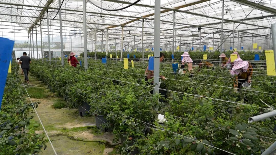 另一边,工人们正忙着采摘、分拣、装箱,供应市场。种植园蓝莓丰产期从1月持续至5月,让消费者实现了“蓝莓自由”。