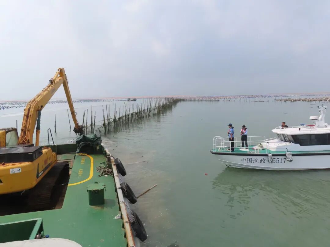 为打击非法捕捞行为,维护海上通航安全,县海洋与渔业局在东山湾云霄县海域同步开展“净海清网”行动,主要清除违规网具和核电航道障碍物,共清理取缔违规网具26槽,清除网具7000余米、竹竿5700余支、钢管10支,清海面积约672亩。
