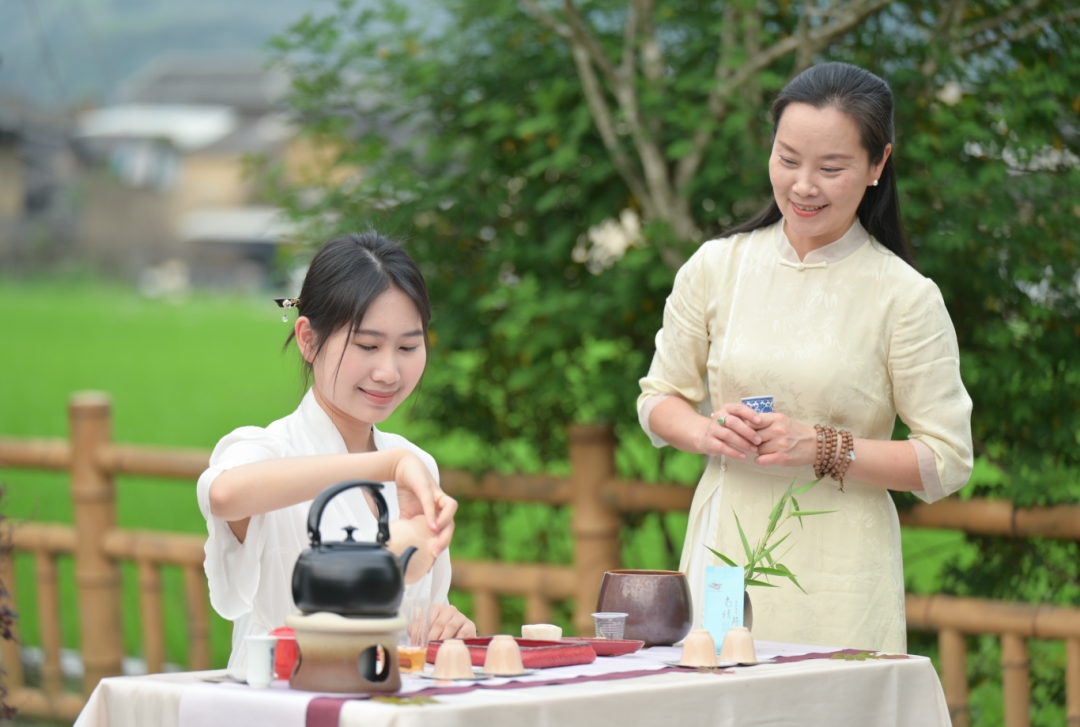 璞山路口,专业茶艺师现场展演茶道,可品茗休憩,在茶香里感受中式茶文化韵味。