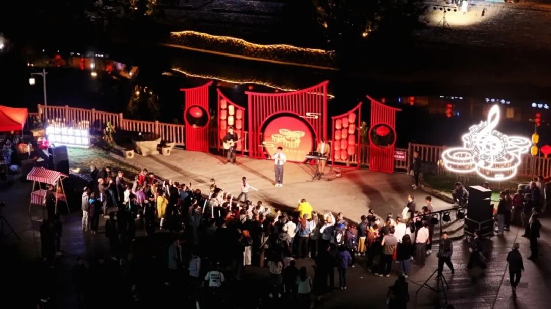 德风楼广场,流行乐队现场开唱,用旋律点燃夜晚,老少皆宜,欢乐满分。