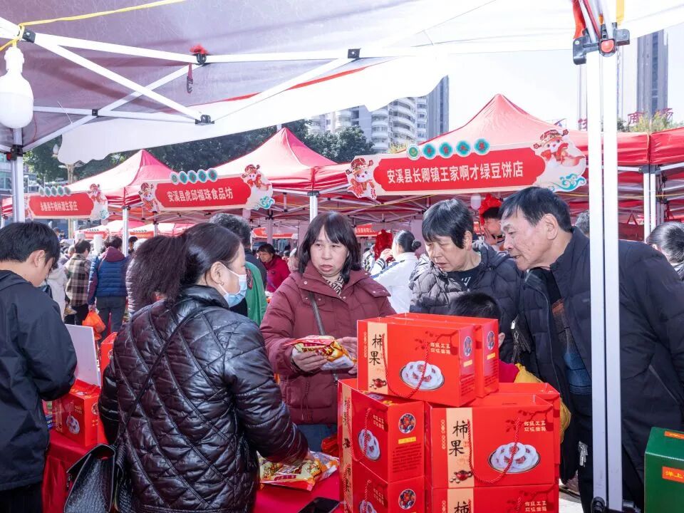 在新春来临之际,于人民广场搭建大型年货市集。活动集中展销安溪农特产品展区、非遗好味、溪有好物、“山海协作”三明大田山珍展区和对口援疆(昌吉)展区等。现场结合安溪本地非遗项目展演、文旅资源推介,并设计融入两岸文化元素的游戏互动环节,旨在满足群众多元化、高品质的年货采购需求,营造出“两岸融合、精品荟萃”的欢乐祥和消费氛围。
