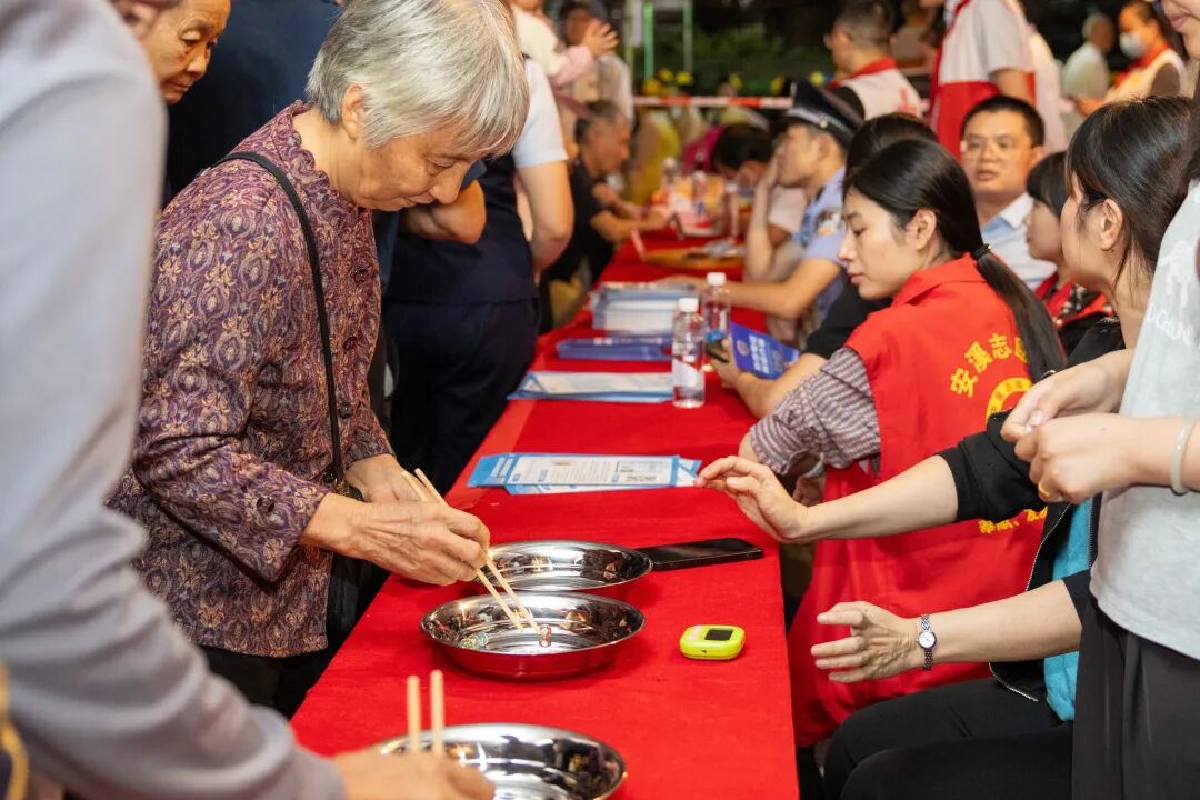 与此同时,“乐活银龄·趣享安康”系列活动也在广场两侧火热进行。漆扇制作、夹弹珠等怀旧游戏吸引了众多长者参与,欢声笑语不断。而由7家长者食堂共同举办的“暖冬膳食品鉴会”则香气四溢,为老人们带来了温暖又健康的味蕾体验。