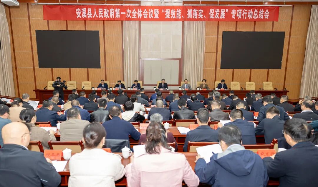 26日,安溪县县长刘永强主持召开县政府全体会议暨“提效能、抓落实、促发展”专项行动总结会。动员县政府系统上下深入学习贯彻县两会精神,进一步凝聚思想共识,始终保持“提效能”的定力、坚定“抓落实”的执着、锚定“促发展”的目标,全力干出高质量、拼出新精彩,推动县政府各项工作奋勇争先、再上台阶,确保“十五五”开好局、起好步。县领导王礼藕、黄汉阳、林毅敏、李树明、卢荣斌、杨剑扬等出席会议。