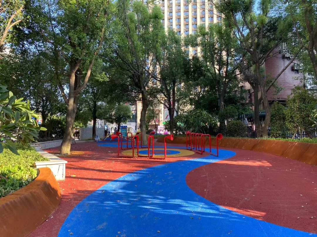 “绿色”蝶变,也藏在百姓家门口。“以前这儿空地杂乱,现在变成了口袋公园,绿植多了,还添了无障碍坡道、遮雨棚,沿岸还有水生植物点缀,周边居民终于有了休闲好去处。”在蓝溪城市阳台工程(雁塔景观提升)现场,市民李女士满脸笑意,看着孩子在健身器材上玩耍。