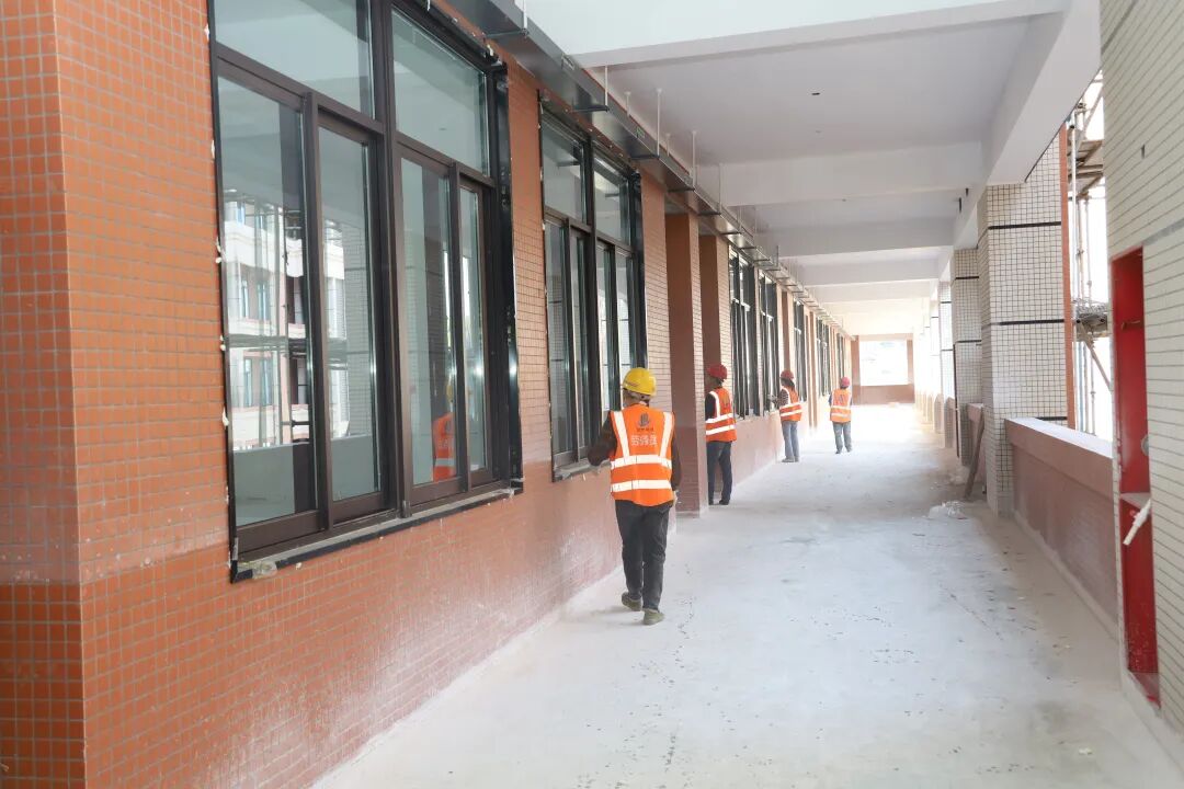 施工方五洲建设集团有限公司董事长林建文介绍,目前进修学校工程已全部完成,正办理竣工备案手续;清溪学校三栋教学楼主体也已完工,进入内外装修阶段,涂料、水电、通风及消防工程完成约90%。“接下来面临雨季,我们将倒排工期,增加人力物力,全力争取在4月底完成全部施工任务。”