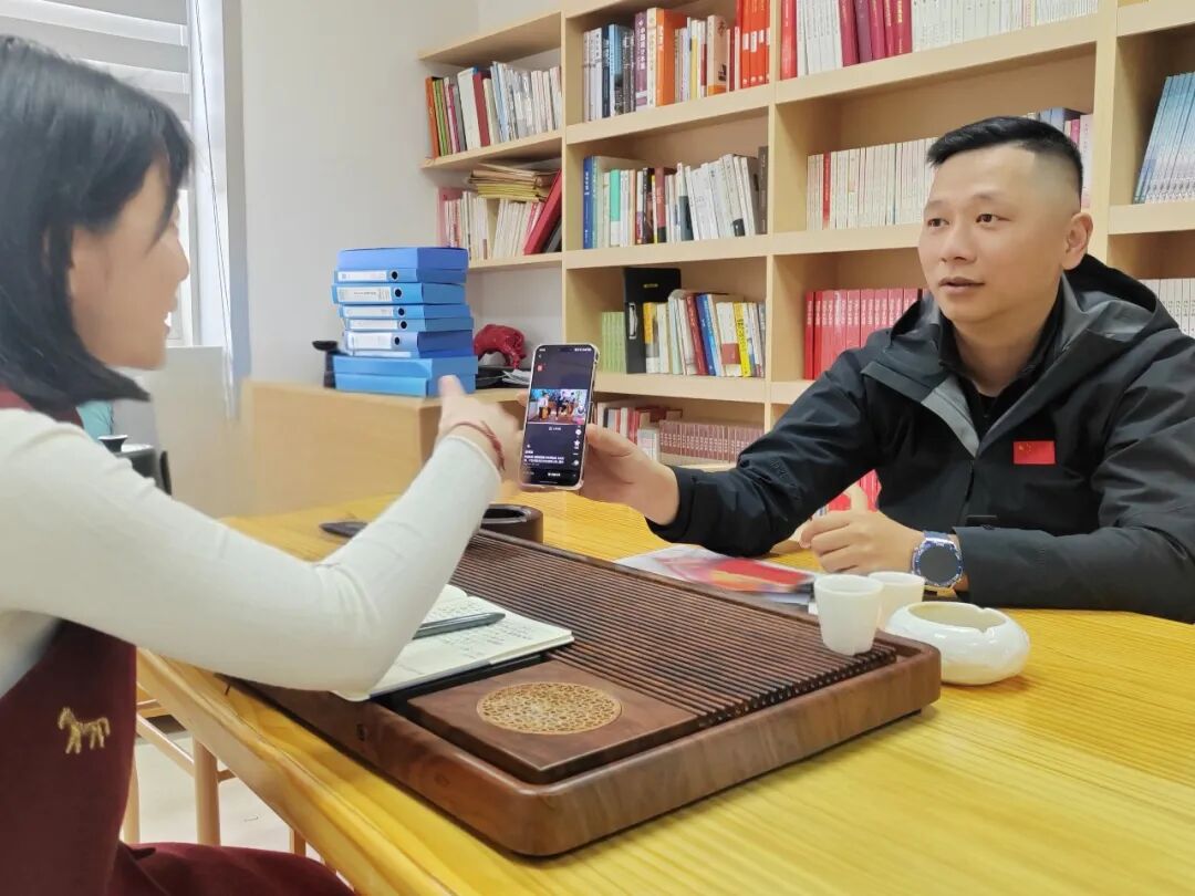 汪师贤向县委人才办工作人员介绍文旅推介情况