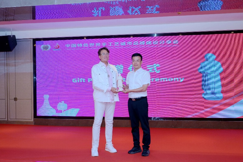 随后,德化县人民政府向萨阿德·卡杜米主席赠送了由兰全盛大师创作的陶瓷雕像,这一深情赠礼不仅是对世界手工艺理事会前主席加达·易加薇博士(Dr. Ghada Hijjawi-Qaddumi)的怀念,更是中外手工艺界友谊与使命传承的象征。