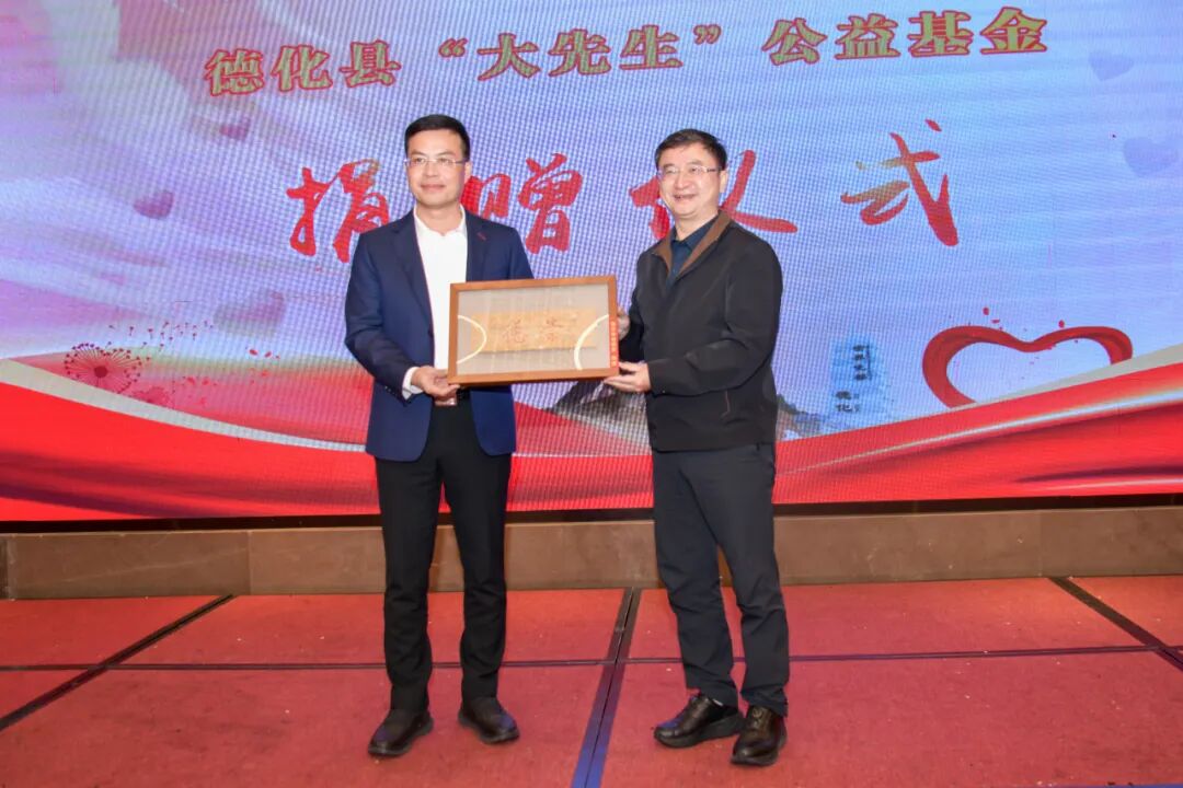 捐赠仪式上,德化县与晋江市互赠纪念品,进一步深化两地交流、厚植友谊根基,推动合作再上新台阶。晋江市商协会与企业家代表向德化县“大先生”公益基金捐赠200万元,其中,劲霸集团捐赠80万元;德化县向晋江市商协会与企业家代表颁发纪念牌匾,表达对晋江市各商协会、爱心企业及企业家的崇高敬意与衷心感谢。