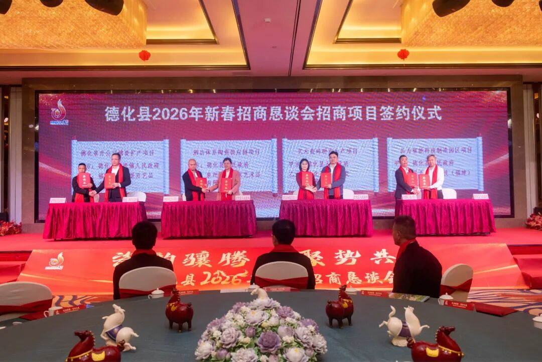 吴志朴说,2026年是“十五五”规划的开局之年,站在新的发展起点,我们将以国际化、艺术化、城市化、品牌化“四化”为引领,坚定不移推进高质量发展,加快发展新质生产力,走出山区特色的共同富裕之路。希望大家继续当好德化发展的“招商先锋”和“决策智囊”,当好德化发展的“合伙人”和“建设者”,当好德化发展的“暖心人”和“支持者”。未来,我们更将以心相交、以诚相待,与所有关心支持德化发展的朋友们一道,乘势而上、奋楫争先,让瓷韵在新时代骧腾绽放,让发展在合作中实现共赢。
