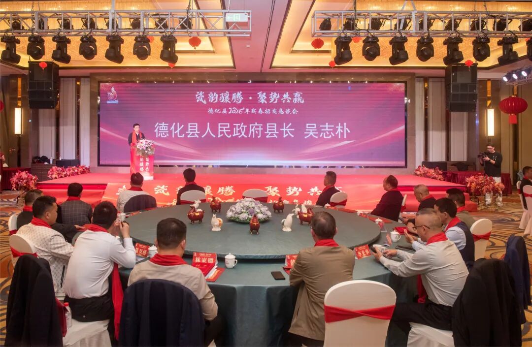 2月14日,“瓷韵骧腾 聚势共赢”德化县2026年新春招商恳谈会系列活动举行。德化县县长吴志朴出席恳谈会并致辞。