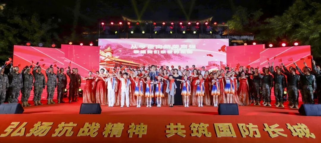 演出最后,全体观众和演职人员挥动手中国旗,共同高唱《歌唱祖国》。舞动的红旗与嘹亮的歌声交织成震撼人心的画面,表达对祖国母亲最深沉的热爱与祝福,为这场国防教育主题活动画上圆满句号。