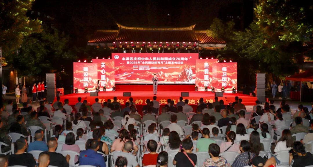 山河披锦绣,盛世写华章。9月28日晚,丰泽区庆祝中华人民共和国成立76周年暨2025年“全民国防教育月”主题宣传活动在真武庙广场举行,干部群众、军人军属齐聚一堂,共忆峥嵘岁月、共话国防使命,进一步激发爱国热情、厚植爱国情怀。
