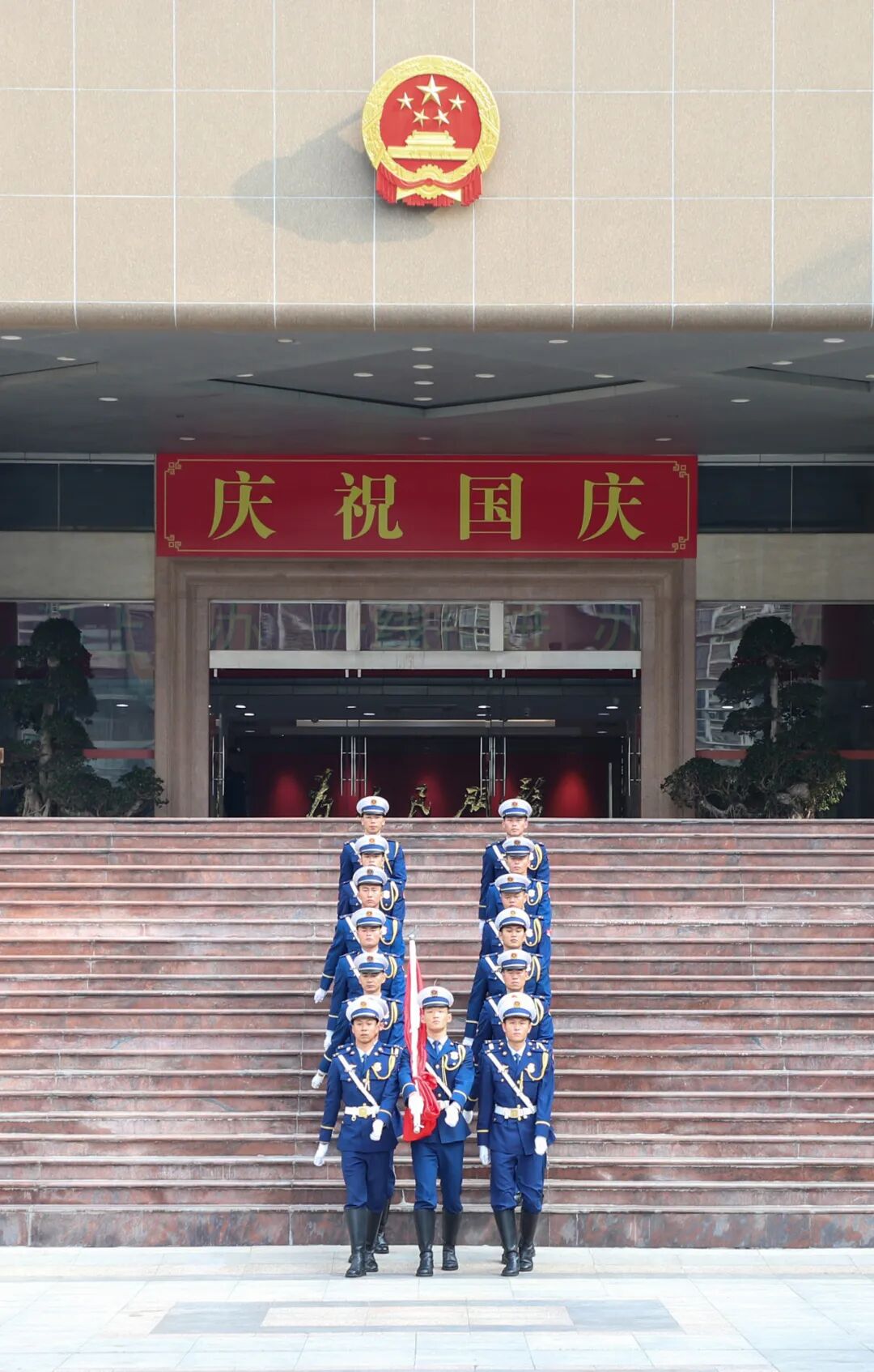 全体人员精神饱满、庄严肃立,面向国旗行注目礼,齐声高唱国歌,共同表达对祖国的深切热爱与美好祝愿。