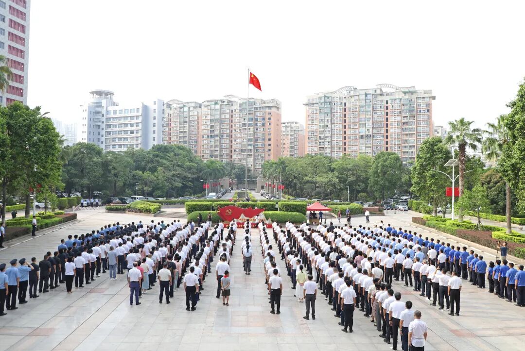 高金全、林清伏、陈逢生、上官蓝波等区四套班子领导,区人武部部长、区法院院长、区检察院检察长,各街道党工委书记、办事处主任、人大工委主任,区直各单位副科级以上干部,区法院、区检察院、区城管局执法人员代表,以及部分中小学校领导代表、群众等参加。区委常委、宣传部部长庄蓉梅主持升国旗仪式。