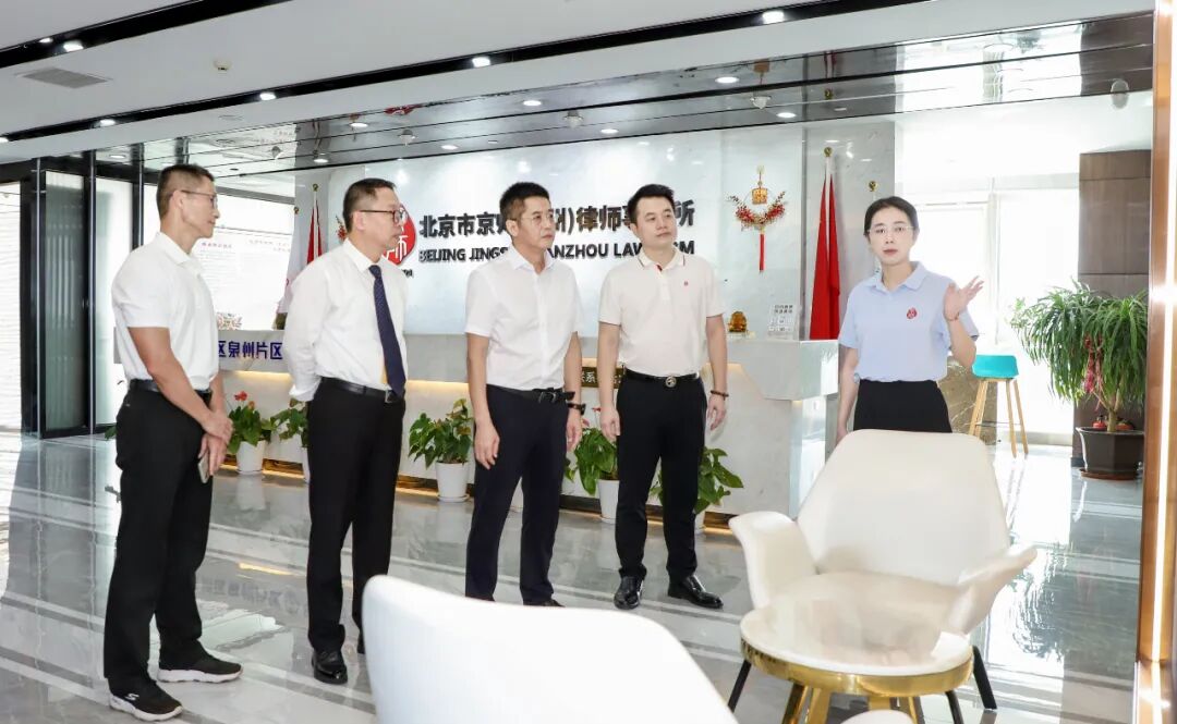 在北京京师(泉州)律师事务所,高金全走访各功能区域,了解律所规模、海内外业务、基层侨联建设及侨务法律服务工作情况。