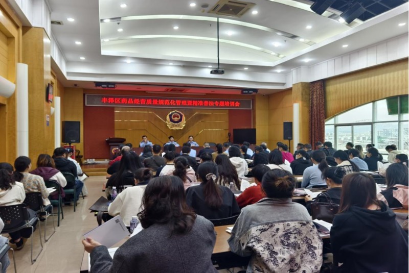 近日,泉州市丰泽区市场监督管理局组织召开丰泽区药品经营质量规范化管理暨精准普法专题培训会。会议围绕提升药品质量管理水平、强化法律法规意识、推动行业规范发展等方面展开系统培训与深入交流。市场监管干部及辖区药品经营企业负责人等近100人参会。