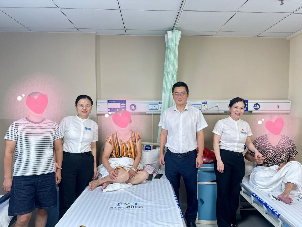 今年8月。张阿婆的女儿黄女士自己也因双眼“看东西模糊”来到惠光爱尔眼科医院就诊,经检查确诊白内障。“目前白内障主要的治疗方法是手术。基于医学和安全考虑,白内障手术不建议双眼同时进行,往往一眼手术后,间隔一周再实施二眼手术。两只眼睛都恢复健康,才能发挥 1+1>2 的视觉效果。”王杰锋院长科普治疗方案时,强调了双眼接受白内障手术对于恢复立体视觉、提升生活质量的必要性,这番话深深触动了黄女士,她想到了母亲尚未手术的左眼。“老人家年纪这么大,如果双眼都能看清楚,走路、生活才会更方便、更安全。”黄女士说。