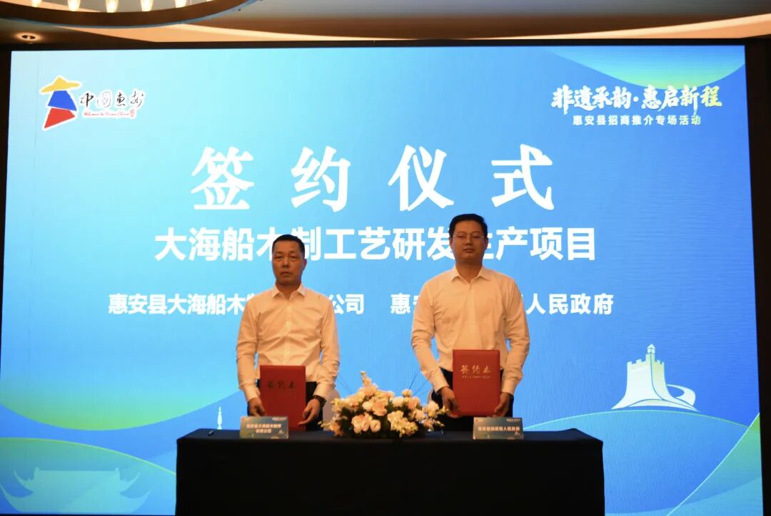 在随后举行的签约仪式上,弘润贝壳博物馆项目、惠安东湖公园招商运营项目、大海船木制工艺研发生产项目等3个项目现场签约,项目涵盖文化展馆、传统工艺、公园运营等领域,为惠安非遗文化与产业融合发展开辟新机遇。