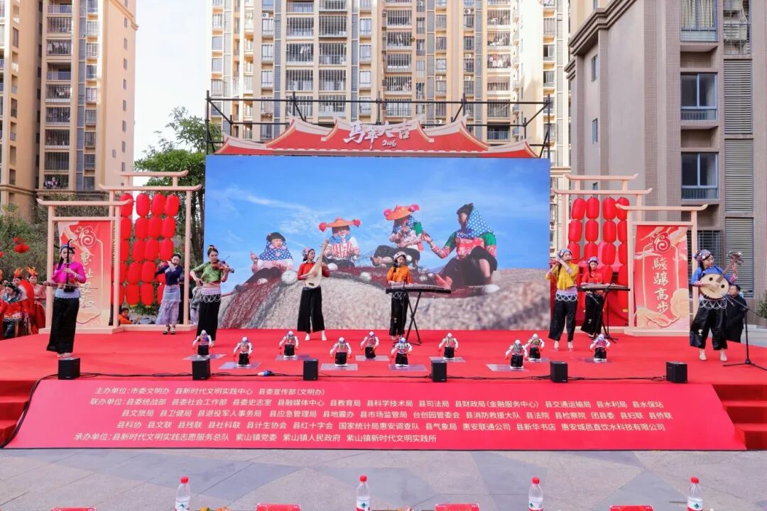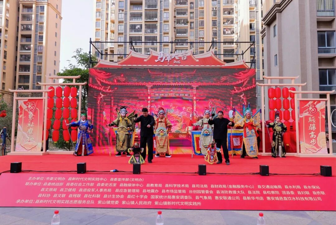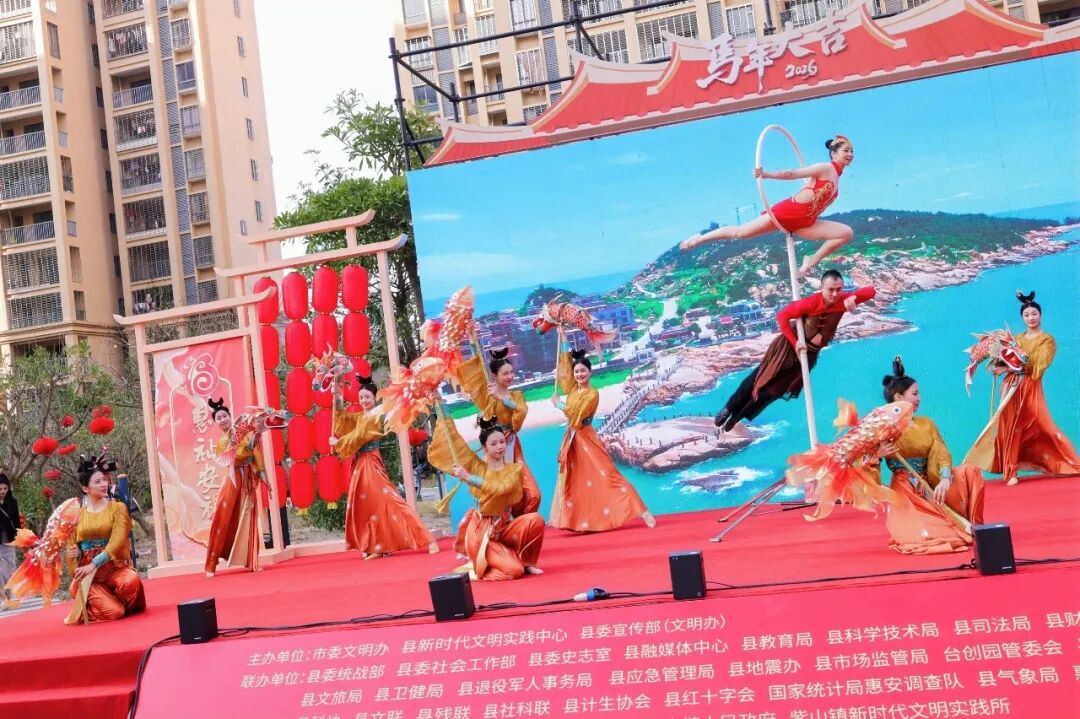 紧接着,《武动山河》武术表演刚劲有力,尽显中华武魂;惠女乐坊与“惠女机器人”同台演绎《好日子》,传统民乐与科技舞蹈碰撞出新奇火花;高甲戏、木偶戏《群英贺春》韵味十足,展现非遗魅力;还有小品《余甘有喜》、歌伴舞、大合唱、杂技等节目轮番上阵,全程高能!演出间隙,参观展览、有奖问答等互动环节更是惊喜不断,丰厚礼品让现场观众笑逐颜开。