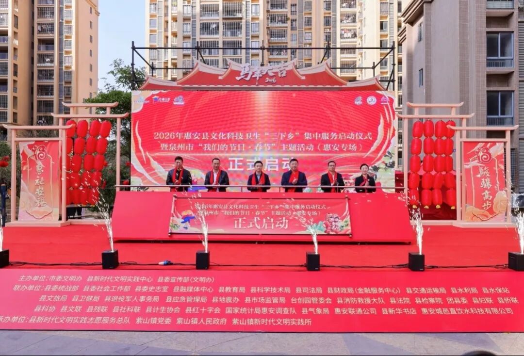 随后,与会领导共同推杆启动2026年惠安县文化科技卫生“三下乡”集中服务活动暨泉州市“我们的节日·春节”主题活动(惠安专场)。此次活动正式拉开2026年惠安县文化科技“三下乡”活动的序幕,深度融合了春节传统文化与现代服务理念,旨在为广大群众带来实实在在的获得感、幸福感与安全感。接下来,惠安县还将围绕群众所需所盼,持续开展形式多样、内容丰富的惠民服务活动,把文化盛宴、科技知识、暖心服务送到基层一线、送到群众身边。
