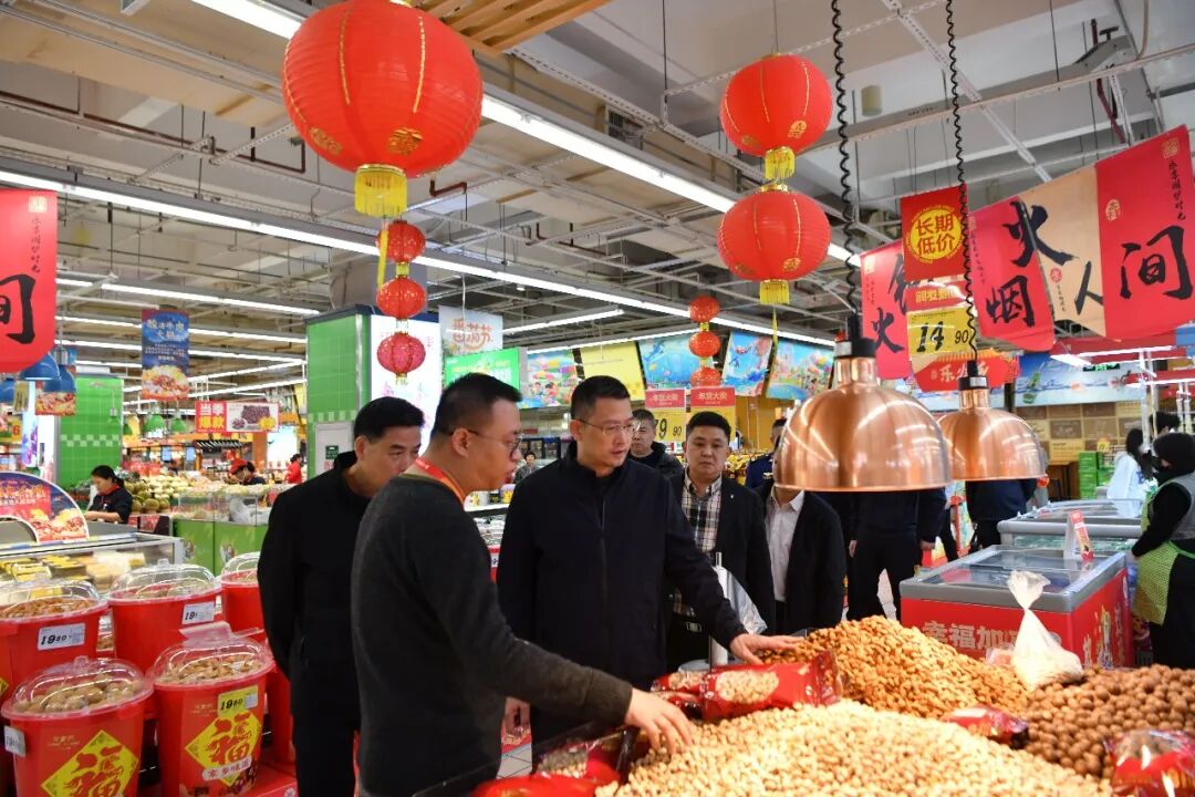 在大润发超市,庄稼祥一行重点检查了节日商品供应、食品安全、消防安全等情况,仔细查看了生鲜食品检验检疫证明、食品保质期、消防通道畅通情况及消防设施运行状况。他要求,商超企业要切实履行食品安全主体责任,严把食品采购、储存、销售等各环节质量关,确保群众“舌尖上的安全”;要加强消防安全管理,定期开展隐患排查整治,坚决防范各类安全事故发生。县工信商务局、市场监管局、消防救援局等部门要强化监管执法,加大巡查力度,全力维护节日市场秩序和消费环境。