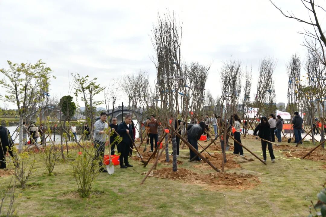 东湖公园植树现场一派热火朝天的繁忙景象,大家分工协作、配合默契,扶正苗木、挥锹培土、踩实围堰,每一个环节都一丝不苟、有条不紊。经过一番辛勤劳动,共栽下高度约9米的香樟10余株,高度约3米的小叶紫薇100余株。一株株新栽下的树苗昂然挺立,在春风中焕发出勃勃生机,为初春的东湖公园增添了一道亮丽的风景线。