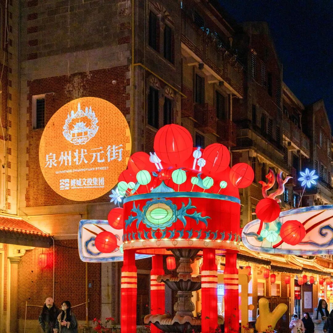 暖黄的灯光勾勒出闽南骑楼的燕尾脊,红灯笼摇曳间,光影里的诗词与古街的状元文化相映成趣,走在路上,仿佛踏过的不是石板,而是泉州千百年的文脉星河。