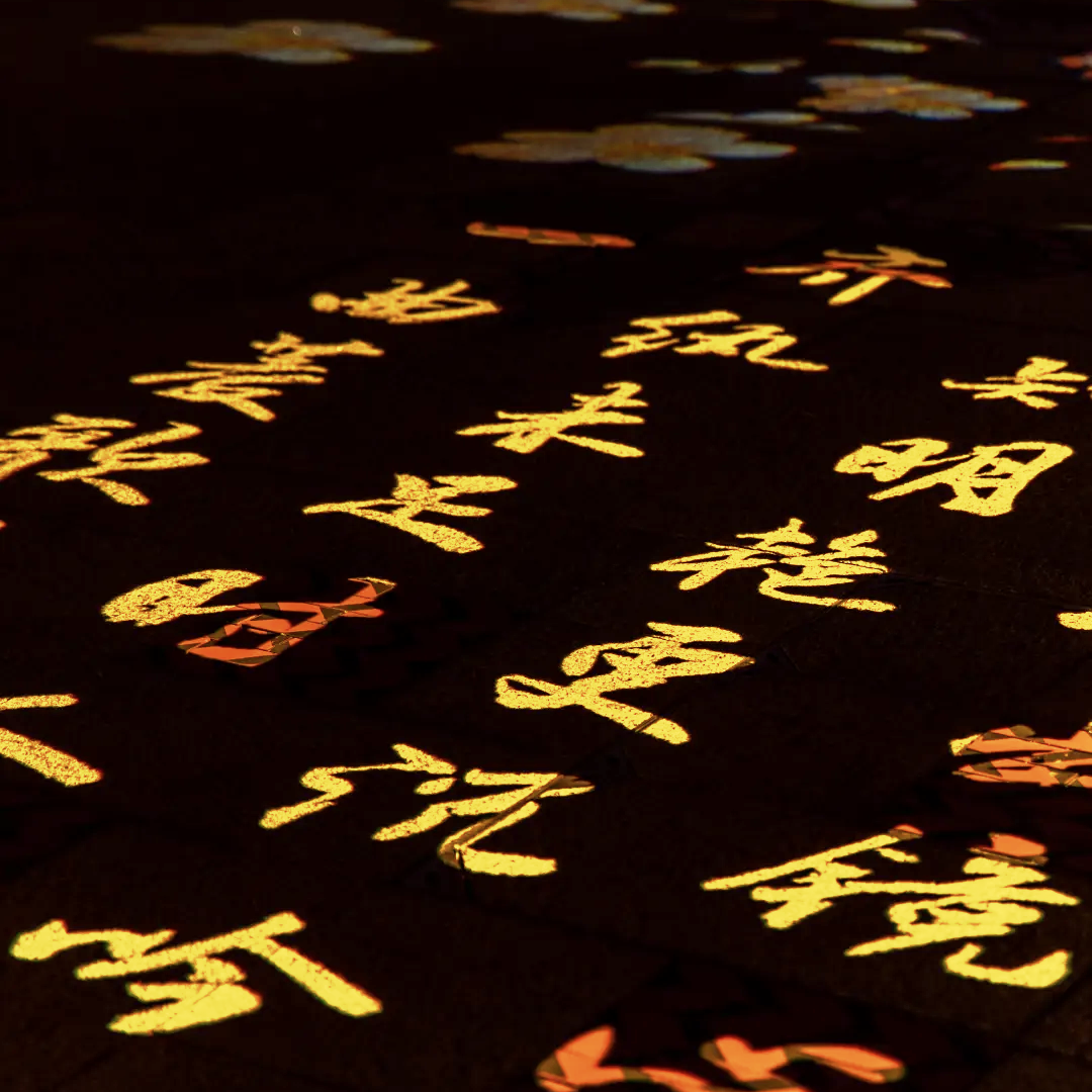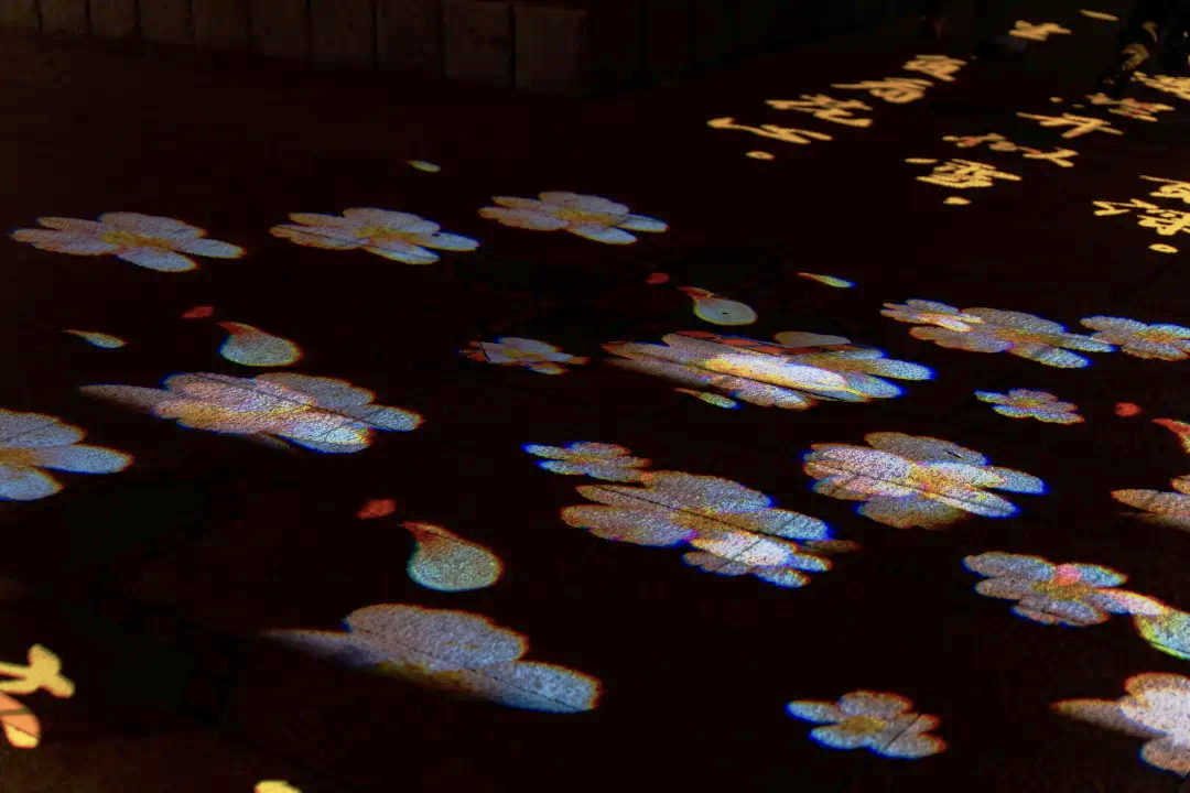 牡丹繁花与锦绣诗词在地面流转,