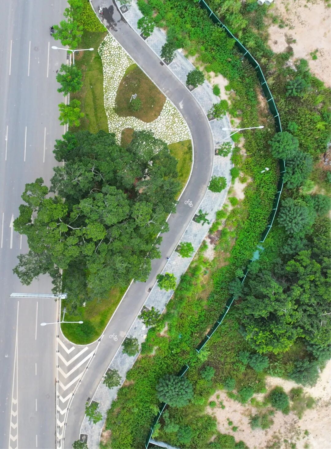 “这株古榕树树龄约167年,在金鲤大道建设过程中,我们提出坚持‘保护优先、景绿相融’原则,在保留其原生风貌的基础上,专门预留出700多平方米的生态空间,因地制宜打造生态景观节点。”区城市管理和综合执法局工作人员介绍,该口袋公园以古榕为中心,铺设透气的植草砖,配植马尼拉草、非洲小百合等多样植被,同步修缮周边原有墙体,形成了“路树相依、景墙相映、古今相融”的特色景观。