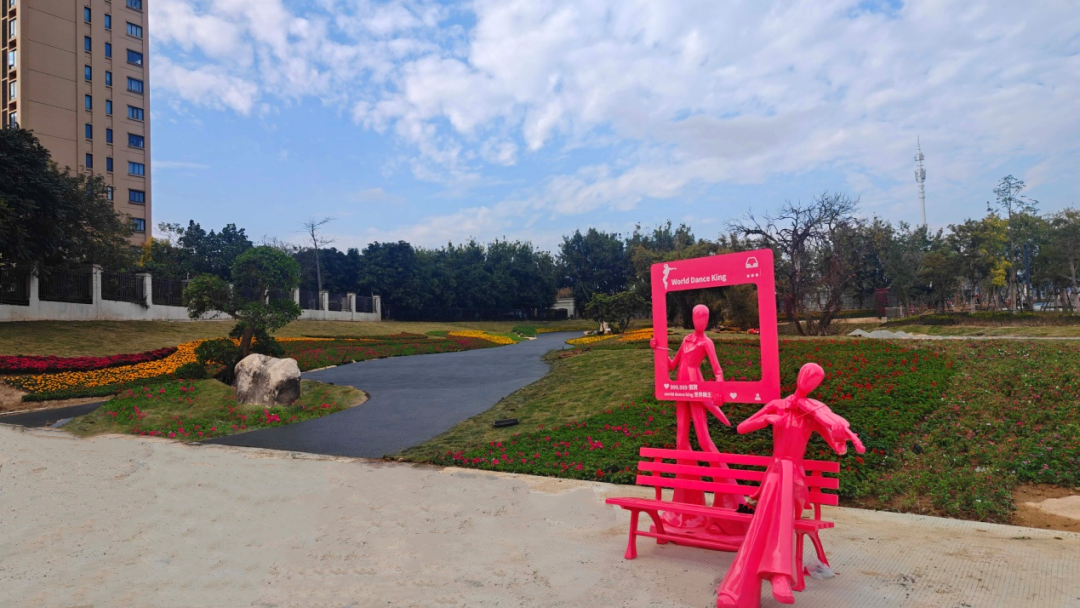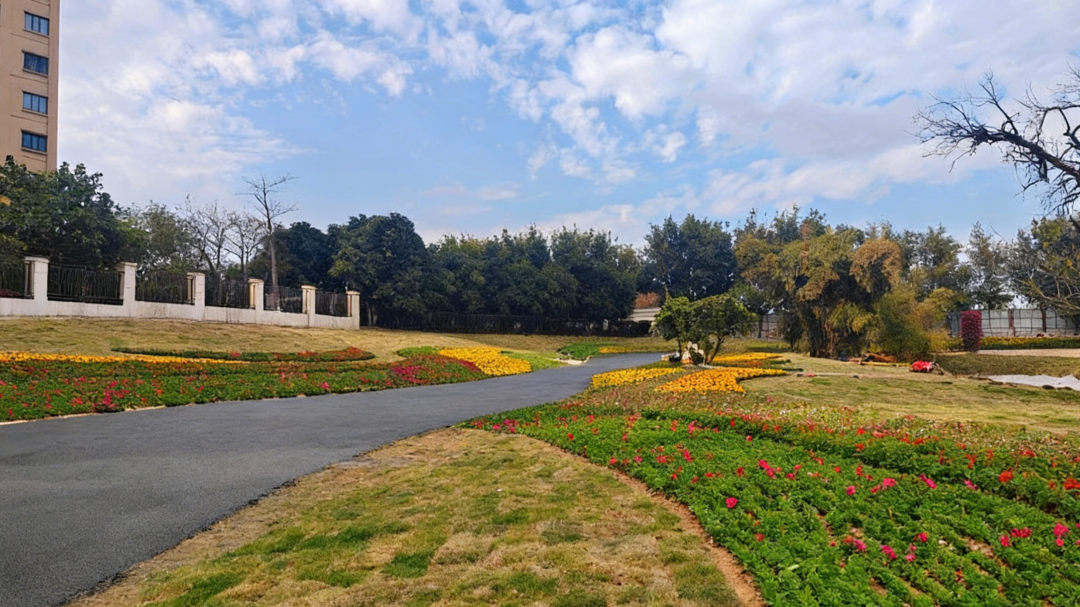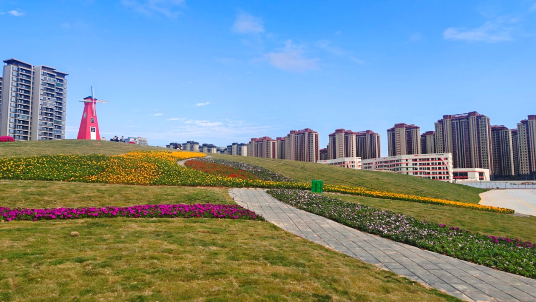 在李贽公园,原本的空地已变身为一片生机盎然的花漾盛境,各色花卉迎风绽放,红的热烈、黄的明媚、粉的温柔,宛若打翻了新春的调色盘,一幅充满年味与生机的生活画卷在此徐徐展开。