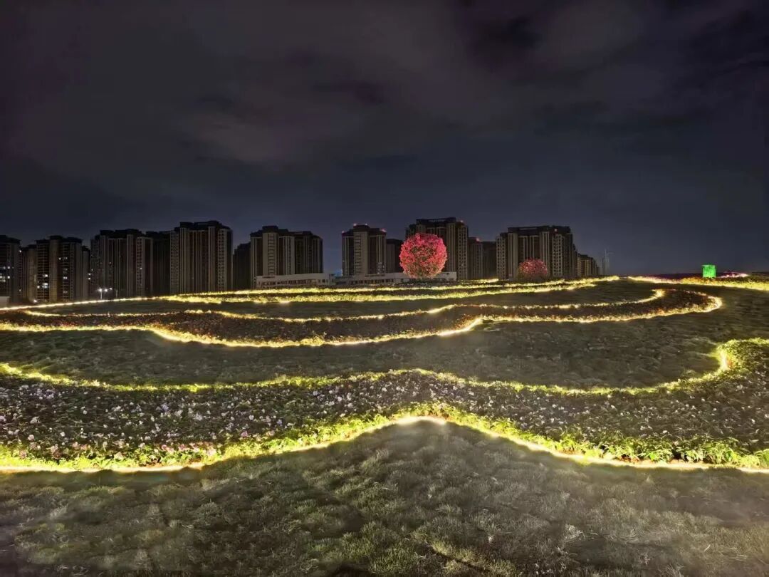 在鲤城万达广场旁,一方草坡被各色花卉层层叠叠铺满,粉紫黄白的花浪随风摇曳,漫步其间可见红风车伫立坡顶,与缤纷花海相映成趣。从高空俯瞰,这处花海宛若一条灵动的鲤鱼;夜幕降临,创意灯光次第亮起,光影勾勒出鲤鱼游弋的模样,将年味与浪漫拉满。