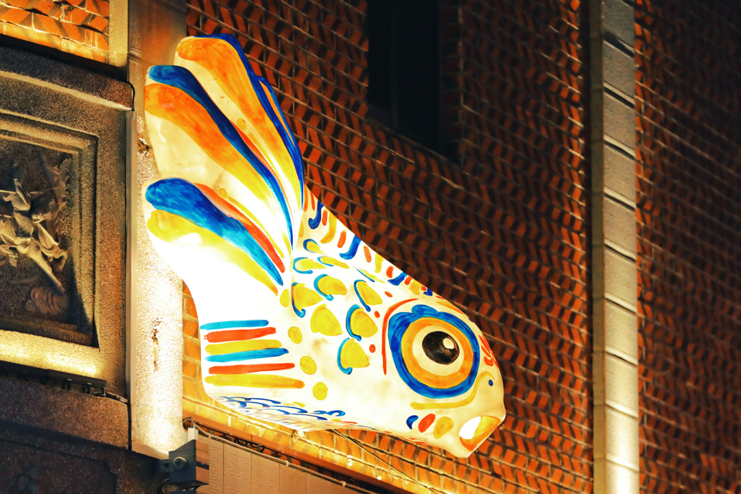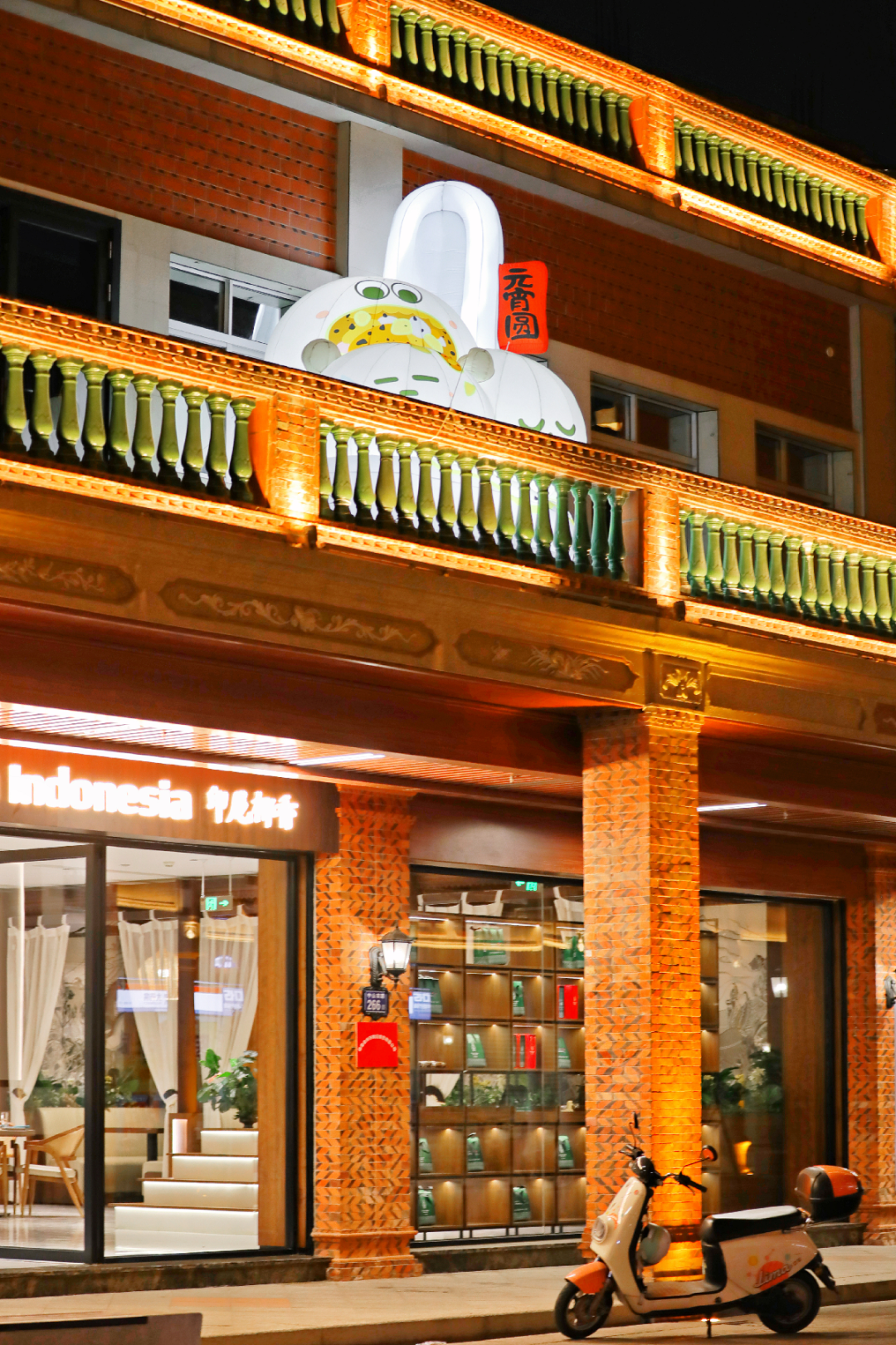 中山南路同样挂满星星点点,美食主题气模灯Q萌可爱,以《漫画西游》为主题的青狮、鳌鱼、寿桃灯彩意象俏皮鲜活。