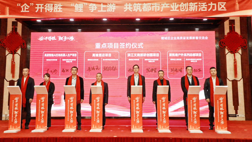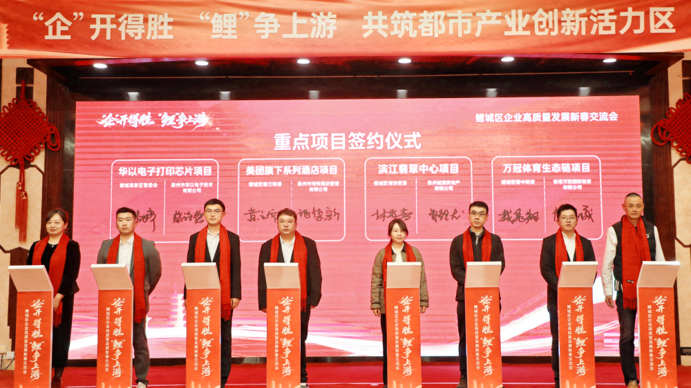 会上,17个重点项目集中签约,涵盖城市开发、基金投资、供应链贸易、总部经济、数字经济、文商旅、高端酒店、人工智能等领域,签约项目契合鲤城发展导向、极具潜力,将为鲤城社会经济高质量发展注入强劲动力。